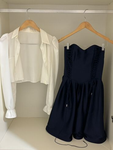 Qadın dəsti – bluz və ətək Təzədir, 2-3 dəfə geynilib - Rəng: tünd göy/qara ton, üzərində çiçək naxışları (çəhrayı, qırmızı, krem və bənövşəyi çalarlar) - Stil: gündəlikdən zərif tədbirlərə qədər ...