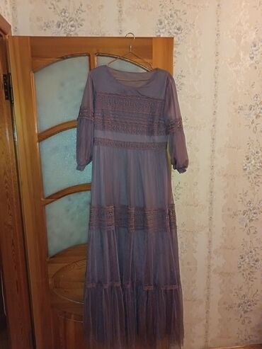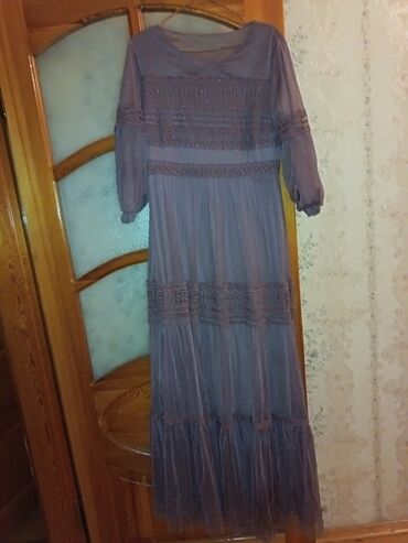Zərif və rahat uzun libas - Model: Uzun, axıcı kəsim, beldən kəmərli