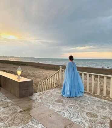 Zərif pelerinli dizaynı və açıq mavi tonu ilə həm qapalı məkan, həm də açıq hava tədbirlərində diqqət çəkən, fotogenik bir modeldir.