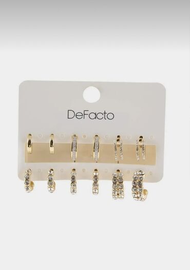 - Rəng variantları: gümüşü tonlarda (ağ, mavi daşlı, inci effektli, ulduz və çiçək formalı, kiçik halqa və twist halqalar) və qızılı tonlarda (hamar halqalar, parlaq ştraz daşlı halqa və mini sırğalar)