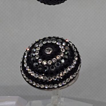 - Dizayn: parlaq qara əsas üzərində şəffaf, kristal daşlar. Sırğalar sferik formadadır, daşlar yerləşdirilərək parıldayan “ombre” effekti yaradır. Üzükdə konsentrik dairələr şəklində bəzək naxışı var.