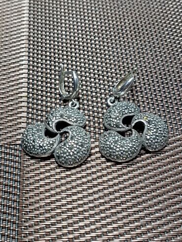 - Model 3: Modern abstrakt kompozisiya. Üç hissədən ibarət burulğanvari formalar, bütün səth xırda relief daşcıqlarla örtülüb. Gümüş tonlarında metal, klips tipli bağlama.