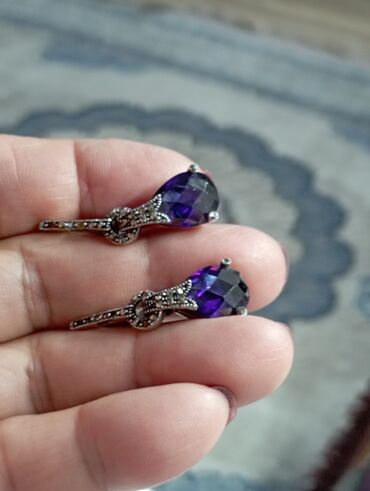 - Model 4: Bənövşəyi iri fasetli damla daşlı zərif model. Üst hissədə naxışlı, xırda daşlı bəzəklər; daş quatre prong tutacaqlarla sabitlənib, dərin bənövşəyi ton parlaqlığı ilə seçilir.