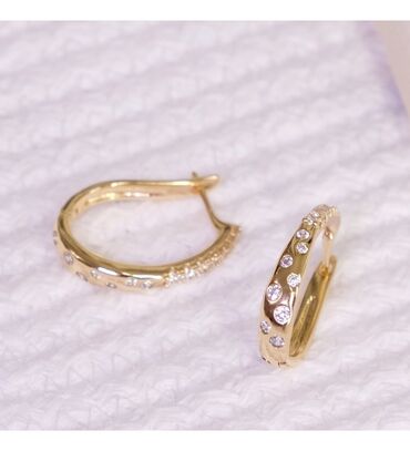 - Kiçik halqa sırğalar (mikro-paved daşlı): Qızılı halqa üzərində müxtəlif ölçülü şəffaf daşların səpintili düzülüşü. Yığcam ölçü, günboyu rahat istifadə üçün uyğun, həm tək, həm də laylı piercing kombinləri ilə gözoxşayan.