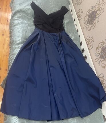 Cagteksde tikilib baha qiymete korsetli.wleyfli,belinin kemeri sokulub .S-M razmere uygundur.2 defe geyinilib yeni kimiZərif gecə/libas – tünd göy rəngdə, uzun və axıcı siluet. - Model: of-shoulde...