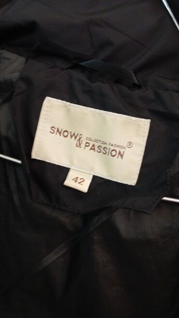 Qara rəngli, qalın şişmə qadın gödəkçə. Yüksək, iri yaxalı dizayn soyuqdan əlavə qoruma verir. Ön hissədə yanlara doğru qeyri-mərkəzi yerləşdirilmiş möhkəm metal fermuar. Tikişləri kvadrat panellərlə bərabər paylanıb, istiliyi yaxşı saxlayır. Uzunluğu kalça səviyyəsinə qədərdir, yüngül oversize kəsim rahat hərəkət imkanı yaradır. Qış və payız mövsümü üçün uyğundur, gündəlik kombinlərlə asan uyğunlaşır. Rəngi universal qara, materialı külək və soyuğa qarşı dayanıqlı sintetik doldurmadır. Marka etiketində “Snow & Passion”, ölçüdə “42” göstərilib.