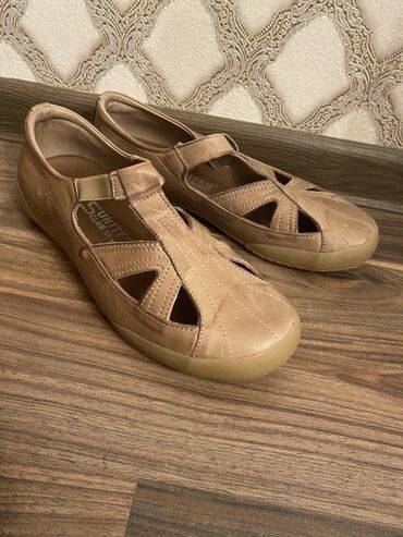 Bej dəri səndəllər. Ölçüsü: 37. Ayaqları yaxşıca əhatə edən dizaynı sayəsində rahatlıq təmin edir. Ortopedikdir. Gündəlik gəzintilər və ya yay aylarında istirahət üçün idealdır.