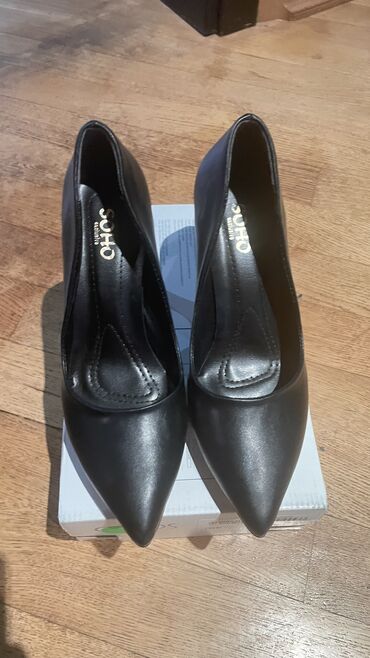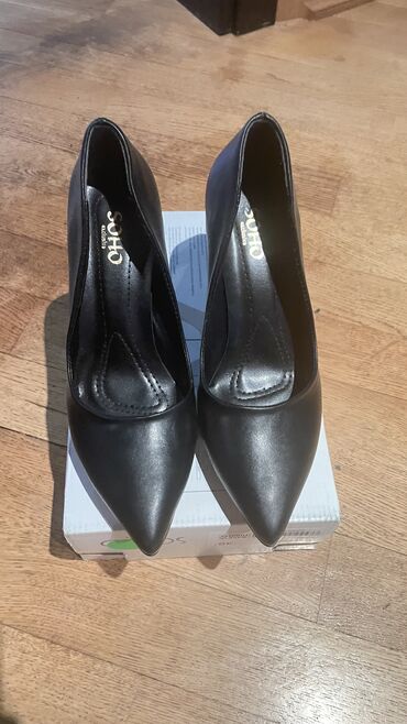 Məhsul: SOHO qadın klassik ayaqqabı - Brend: SOHO - Rəng: qara - Model: sivri burunlu, klassik pump - Ölçü: 40 (daban altında işarə var) - Daban: nazik/klassik yüksəklikdə stilet tipli - Material ...