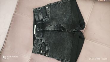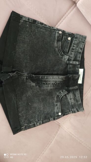 Qara rəngli cins şort — Terranova - Ölçü: 38 / XXS (etiketdə göstərilib) - Model: yırtıq və cırıq detallı, kəsik kənarlı - Material: denim (cins) - Beli: klassik bel, kəmər yerləri var - Bağlanma: ...