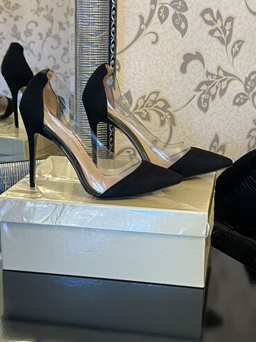 Minimalist xəttlər, şəffaf yan hissələr və kəskin uclu burun sayəsində ayaqda zərif və uzadıcı effekt yaradır. Qara rəng hər kombinasiyaya uyğun gəlir, nazik hündür daban isə görünüşü daha şıq edir.