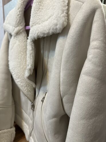 Stradivarius qadın qısa şerpa içlikli “aviator” üslublu kürk görünümlü gödəkcə - Rəng: açıq krem/ekru - Bədən ölçüsü: L (EUR L / USA L / MEX 30) - Material: süet effektli üst parça, içlik və yaxad...