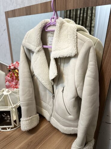 ZARA qadın kürkü ilə içlikli gödəkçə.L razmer - Model: moto/biker tərzində - Rəng: açıq bej/taffeta boz tonları - Material: süet effekti olan üst qat, içi və yaxası qalın süni kürk (şerpa) - Yaxa:...