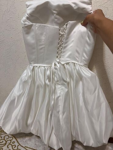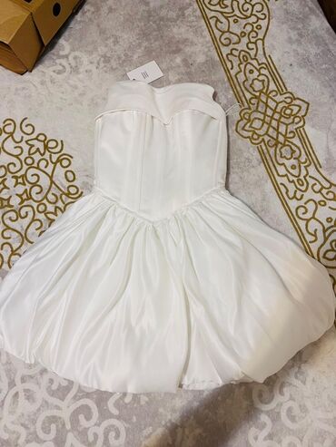 • Ağ rəngli zərif ziyafət/libas paltarı - Model: qolsuz deyil, həcmli