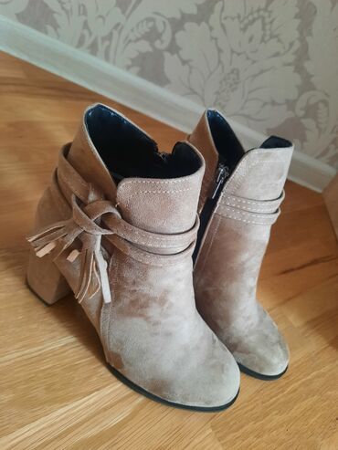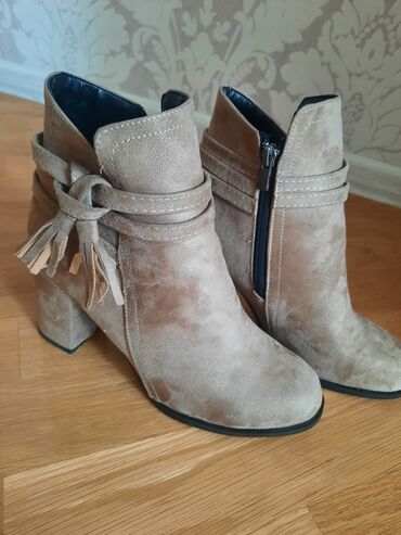 Qadın üçün süet qısa çəkmələr - Rəng: açıq bej/çəhrayı-bej ton -