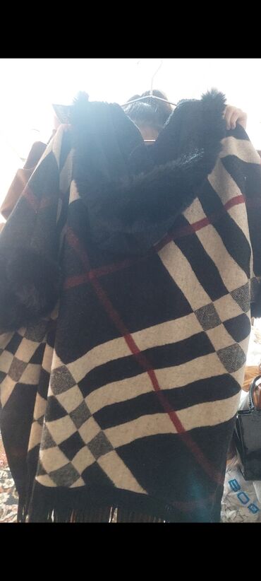 Bej rəngli qadın pelerini/ponçosu - Model: üçbucaq kəsimli ponço - Rəng: bej - Detallar: kənarlarda və yaxa hissəsində süni kürk bəzəklər (qəhvəyi tonlarda, yumşaq tekstura) - Bağlanma: ön hissədə...