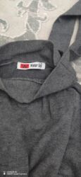 Az geyinilib KUVASZ brendinin qadın donu. - Rəng: tünd boz - Ölçü: 40 (etiketdə göstərilib) - Qısaqollu, yumru yaxa - Yan hissələrdə qara parçalı detallar və bağlama kəmər - Ön hissədə iki ədəd gü...