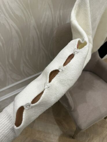 2 defe geyilib.problemsizdi.Standart razmer Ağ rəngli trikotaj sviter - Model: dairəvi yaxalı, uzunqol - Material: yumşaq trikotaj (toxunma) - Naqış: ajurlu (dekorativ dəlikli) dizayn, romb motivl...