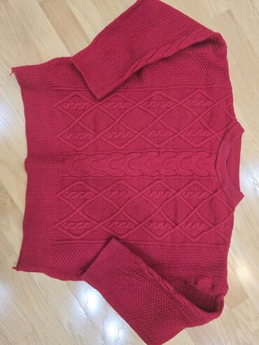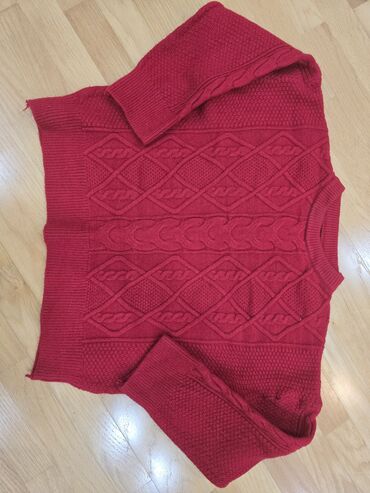 Qırmızı trikotaj sviter One size- S/M olar yupyumşaq materialı var çox qəşəngdi 10 azn