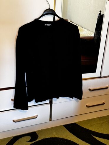 Kabel toxunuşlu krem rəngli sviter - Model: dairəvi yaxalı, uzunqollu - Rəng: açıq krem/ivori - Naqış: klassik iri örgülü (cable knit) faktura - Material: qalın trikotaj; bel, yaxa və qollarda rez...