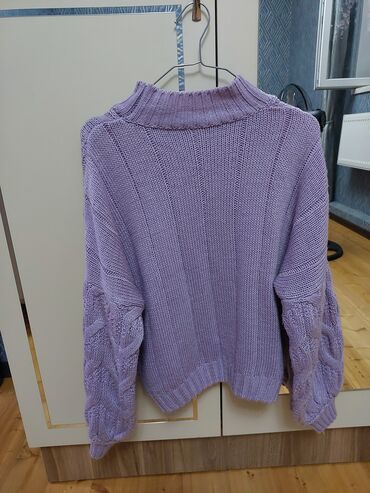 Pulsuz çatdırılmaBu bənövşəyi rəngdə qadın sviteri, geniş trikotajlı qol detallarına və hündür yaxalı dizayna malikdir. Qabarıq hörüklü naxışları ilə rahat və dəbli görünüş təqdim edir. Uzun qolları və elastik manşetləri sayəsində soyuq havalarda isti saxlamaq üçün uyğundur. Gündəlik geyim üçün ideal seçimdir.
