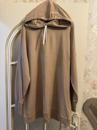 Açıq bej rəngli kapüşonlu svitşot - Klassik uniseks model - Kapüşon iplə tənzimlənir, iki metal halqa ilə möhkəmləndirilib - Ön tərəfdə kənarlara keçən kenguru cib - Elastik manjetlər və bel hissə...