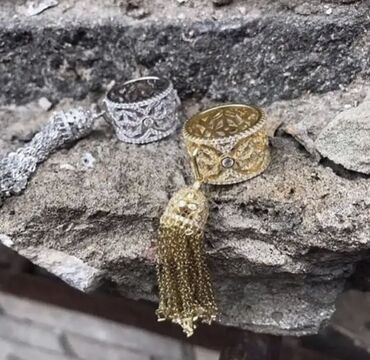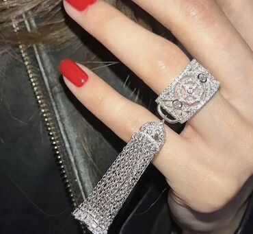 - Dizayn: Geniş halqalı, daşlarla bəzədilmiş açıq işli ornament; ön hissədə mərkəzi dairəvi motiv və xırda parlaq daş detalları.