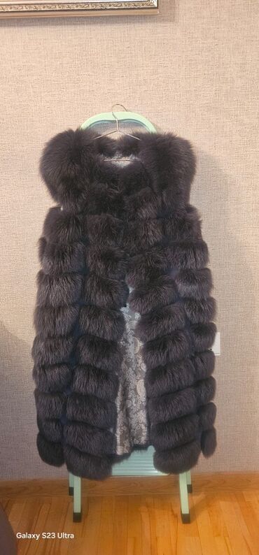 Qara xəz jilet - Rəng: Dərin qara - Uzunluq: Dizə yaxın uzun kəsim (uzun jilet) - Dizayn: Eninə panellərlə yığılmış həcimli, puflu tekstura; geniş kürək və dolğun yaxa xətti - Siluet: Sərbəst, rah...