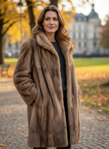 Qadın kürkü – təbii xəz, ikirəng dizayn - Model: uzun, klassik