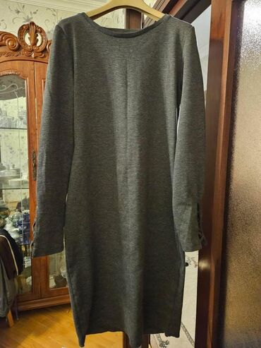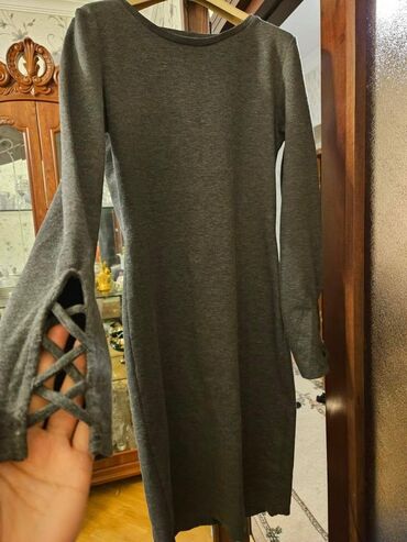 1-2 dəfə geyilib təzə Qadınlar üçün trikotaj paltar - Rəng: tünd boz - Model: beldən yığılan, dar siluetli, uzun qol, “wrap” üslubunda üst hissə - Material: yumşaq, elastik trikotaj (isti və rahat...