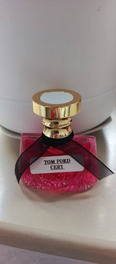- Tom Ford Cery: Parlaq çəhrayı, zərif qara lentlə bəzədilmiş flakon. Qadınsı, zərif və cazibədar çiçək-meyvə harmoniya; bahar-yay üçün uyğundur.