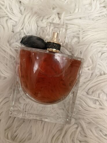 - Şıq, şəffaf kvadrat flakon, içərisində kəhrəba rəngli ətir mayesi