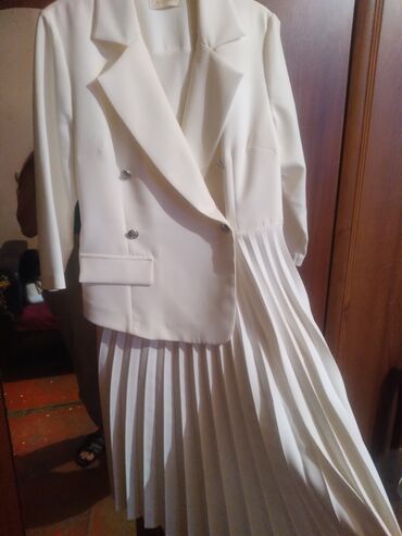 Ağ rəngli qadın kostyum dəsti - Üst geyim: Kəsimi sərbəst, düz