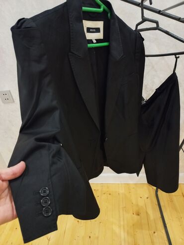 İPEKYOL qadın kostyumu - Rəng: açıq krem/şampan - Dəst: jaket + eyni rəngli ətək (şaquli kəsimli, arxa hissədə gizli fermuar görünür) - Jaket: düyməsiz örtülü ön panel dizaynı, iki cərgə dekorativ...