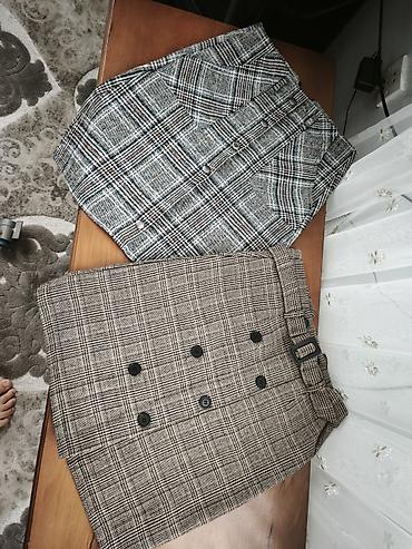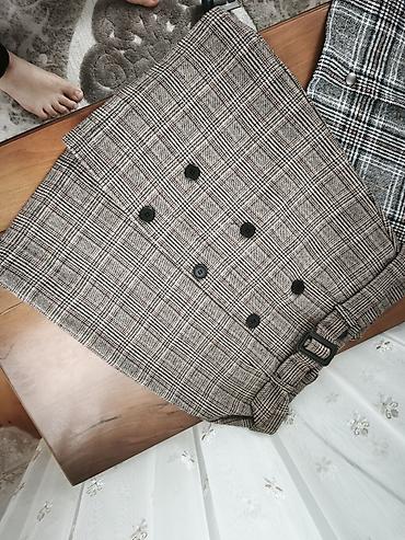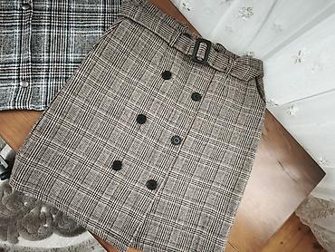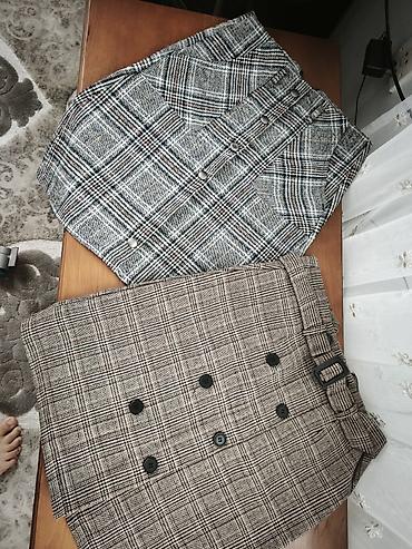 Cins ətək – 2 model bir arada - Material: klassik mavi denim (pambıq əsaslı), azacıq elastiklik. - Kəsimlər: 1) Mini cins ətək – 5 ciblə (2 ön, 2 arxa, 1 sikkə cibi), bel kəməri üçün ilgəklər, d...