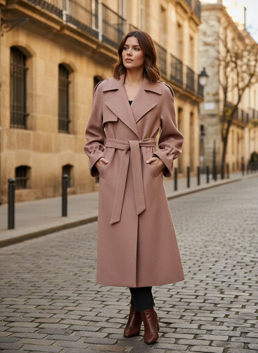 Qadın bej trench-kot - Rəng: açıq bej/şaftalı-bej ton - Model: ikiqat