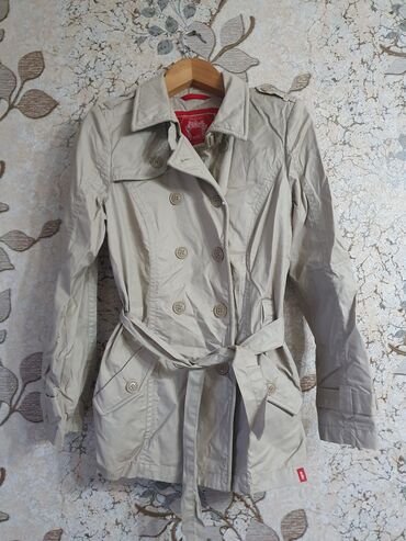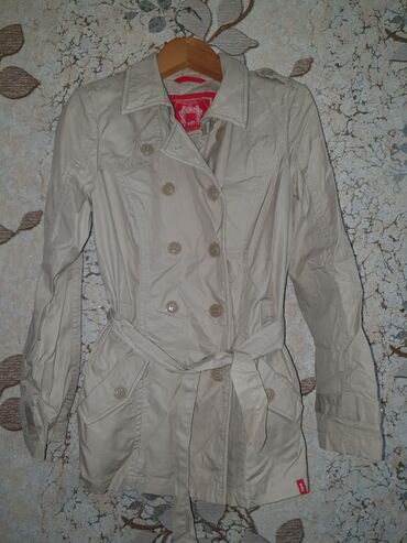 Brend: Esprit Model: Yüngül qadın trençi/yağmurluq - Rəng: Krem/bej - Dizayn: Klassik yaxalıq, beldən kəmərlidir - Bağlanma: Ön hissədə gizli ildırım (fermuar) və üstü düyməli plan - Ciblər: Ön tə...