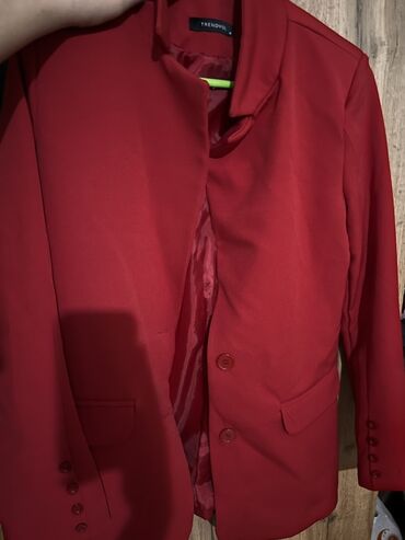 Qırmızı rəngli qadın blazer - Brend: CRÖMER - Ölçü: XL (etiketdə göstərilib) - Rəng: tünd/qırmızı - Model: 2 düyməli ön bağlanma, qara düymələr - Yaxa: kəskin uclu, klassik rever - Astarlama: tam ...