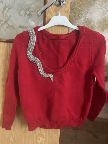 Kabel toxunuşlu krem rəngli sviter - Model: dairəvi yaxalı, uzunqollu - Rəng: açıq krem/ivori - Naqış: klassik iri örgülü (cable knit) faktura - Material: qalın trikotaj; bel, yaxa və qollarda rez...