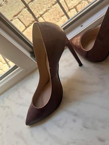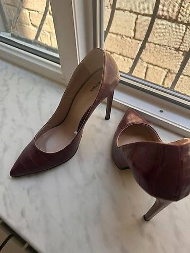 Qadın üçün klassik tufli 36,37,38 razmerlər hər biri 2 manata təzə qalıblar nabuk var dəri var - Rəng: qara - Model: sivri burunlu, nazik (stiletto tipli) daban - Daban hündürlüyü: təxminən 6–7 s...