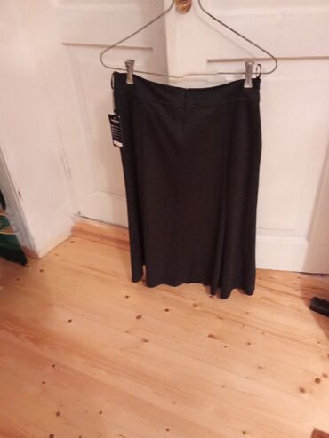Ətək. Qadın ətəyi – tünd boz/qaraya çalan rəng, xırda qızılı naxışlı. - Uzunluq: midi-maxi (baldırdan aşağı). - Kəsim: trapez/A-kəsim, ön hissədə plisse/qatlanma detalları. - Kəmər yeri mövcuddur; ...