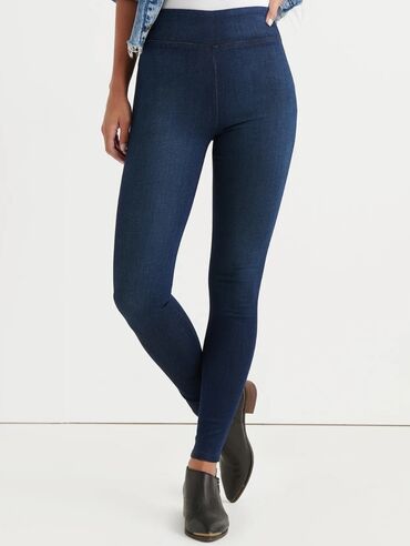 Tünd göy rəngdə, cins materialdan hazırlanmış qadın lasin tipli şalvar. Yüksək bel kəsimi ilə rahatlıq və müasir görünüş təklif edir. Slim fit forması bədənə gözəl oturur. Gündəlik istifadə üçün uyğundur.