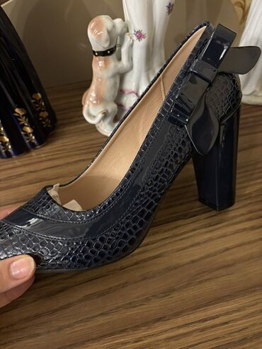 Qadın ayaqqabısı – tünd göy rəng, laklı krokodil teksturalı