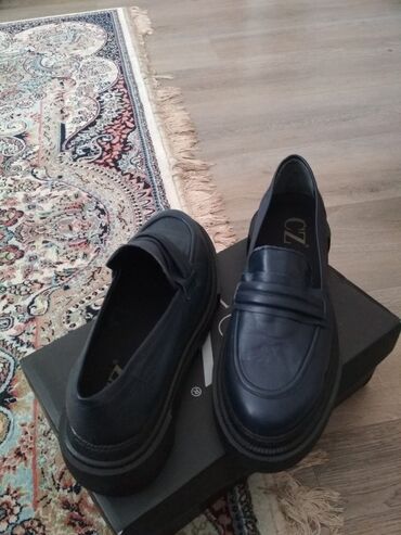 Qadın loafer ayaqqabıları - Rəng: qara(altlıq ağ) - Ölçü: 38 (altlıqda qeyd olunub) - Üst hissə: hamar teksturalı, yüngül perforasiya və dekorativ metal halqa detalı - Daxili: yumşaq, perforasiyal...