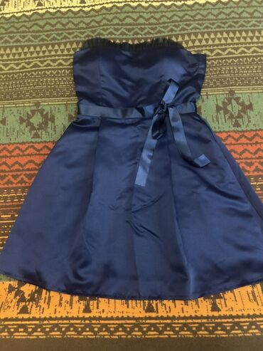 Zərif gecə paltarı – tünd göy, atlas parça. - Model: strapless (qol və