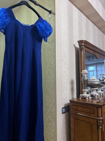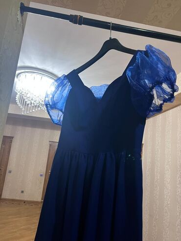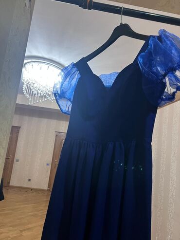 Qadın paltarı – tünd mavi, maxi uzunluq