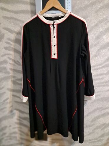 Terranova qadın donu - Ölçü: L (etiketdə göstərilib) - Rəng: qara fon üzərində qırmızı çiçək naxışları və xırda ağ nöqtələr - Model: Düz kəsim, dizdən yuxarı uzunluqda tunik tipli bluz - Yaxa: dai...
