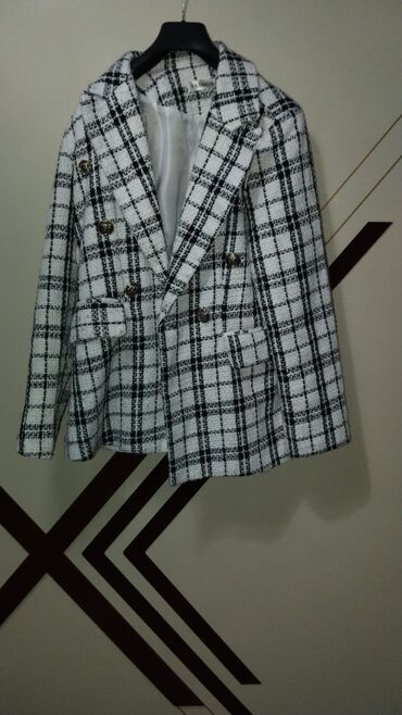 ZARA qadın tweed blazer - Modell: ZARA Woman tweed blazer - Material: teksturalı tweed parça, içi astarlı - Rəng: açıq bej/şaftalı tonlarında ağ naxışlı dama (check) effektli - Dizayn: geniş, qırç...