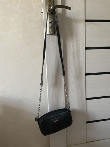QaraGuess. Bu, gündəlik istifadə üçün uyğun, kiçik, qara rəngli, çarpaz formada daşına bilən çantadır. Üzərində naxışlı Guess loqosu və zəncirvari kəmər detalı var. Daxili hissəsi əşyalarınızı təhlükəsiz saxlamaq üçün fermuarlı bağlıdır. Kompakt ölçüsü sayəsində əsas əşyalarınızı hər zaman özünüzlə daşımaq üçün rahatdır.