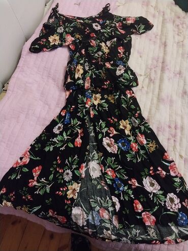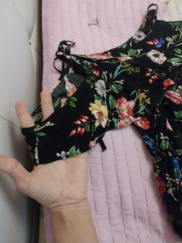 - Rəng: qara fon üzərində çoxrəngli çiçək printi (ağ, qırmızı, mavi, yaşıl tonlar)