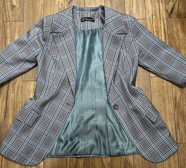 Qadın kostyum - Brend: Fashion (etiketdə göstərilib) - Ölçü: 36 - Dizayn: İkiqat düyməli, klassik uzun kəsim - Naxış: Boz tonlarda xırda xallı/çəkməli və xətlərdən ibarət dama naxışı - Detallar: Dö...
